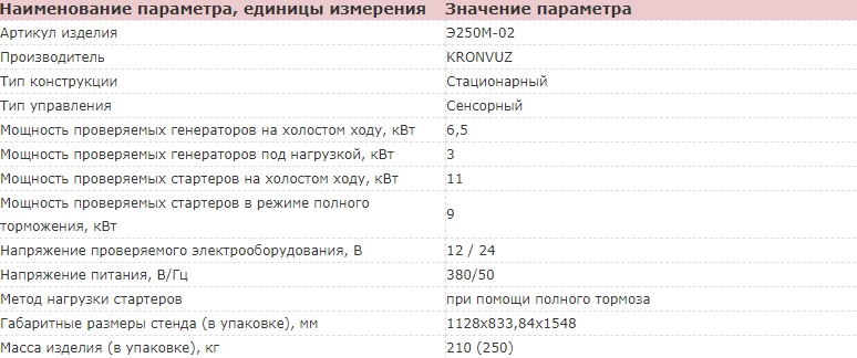 Стенд для проверки стартеров и генераторов Э250М-02специализируется на настройке и тестировании автомобильного электронного оборудования: стартеров, генераторов, тяговых реле и других. Применяются на станциях технического обслуживания, на производстве, в учебных заведениях. Проверка электроники осуществляется в двух режимах: на холостом ходе и под нагрузкой, и также в режиме полного торможения. Стенд моделирует режимы проверяемого оборудования, снимает показания и выявляет неисправности.
